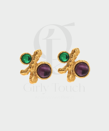 Boucles d'oreilles en acier inoxydable avec détails de pierre en Crystal mauve et verte