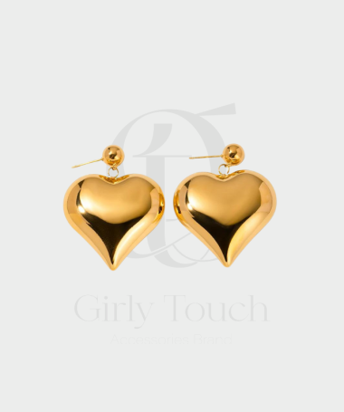 Boucles d'oreilles forme de gros cœur en acier inoxydable plaqué en or