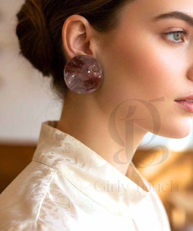 Laissez-vous séduire par ces magnifiques boucles d'oreilles fantaisie en résine marbrée forme ronde . Leur finition élégante dans des tons de marron chauds apporte une touche naturelle, douce et sophistiquée à votre look. Idéales pour les femmes qui aiment les accessoires originaux et stylés.