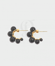 Mini créoles forme de C ornées de pierres ONYX sur une base en acier inoxydable .
