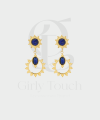 Boucles d'oreilles style vintage forme de rond similaire à un soleil ornée d'une pierre lapis lazuli