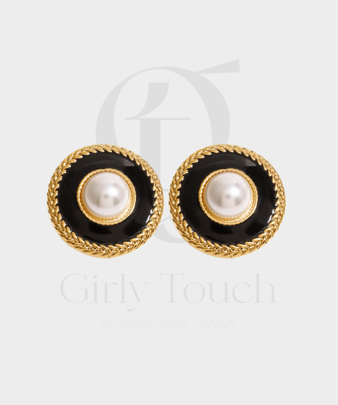 Affirmez votre style avec ces boucles d’oreilles rondes au charme vintage, où le noir profond rencontre l’éclat du doré. En leur centre, une perle nacrée attire la lumière avec finesse, tandis que le contour doré texturé apporte une touche sophistiquée. Fabriquées en acier inoxydable plaqué or 18K, elles sont à la fois élégantes, résistantes et durables.
