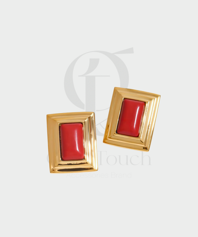 Laissez-vous séduire par le design géométrique et audacieux de ces boucles d'oreilles. L'alliance intemporelle du métal doré et d'une pierre centrale rouge profond apporte une touche de caractère immédiate à votre style. Que ce soit pour...