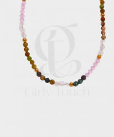 Collier simple en pierres naturelles et Crystal de différentes couleurs , chic et fin ,peut être porté seul ou avec plusieurs autres colliers